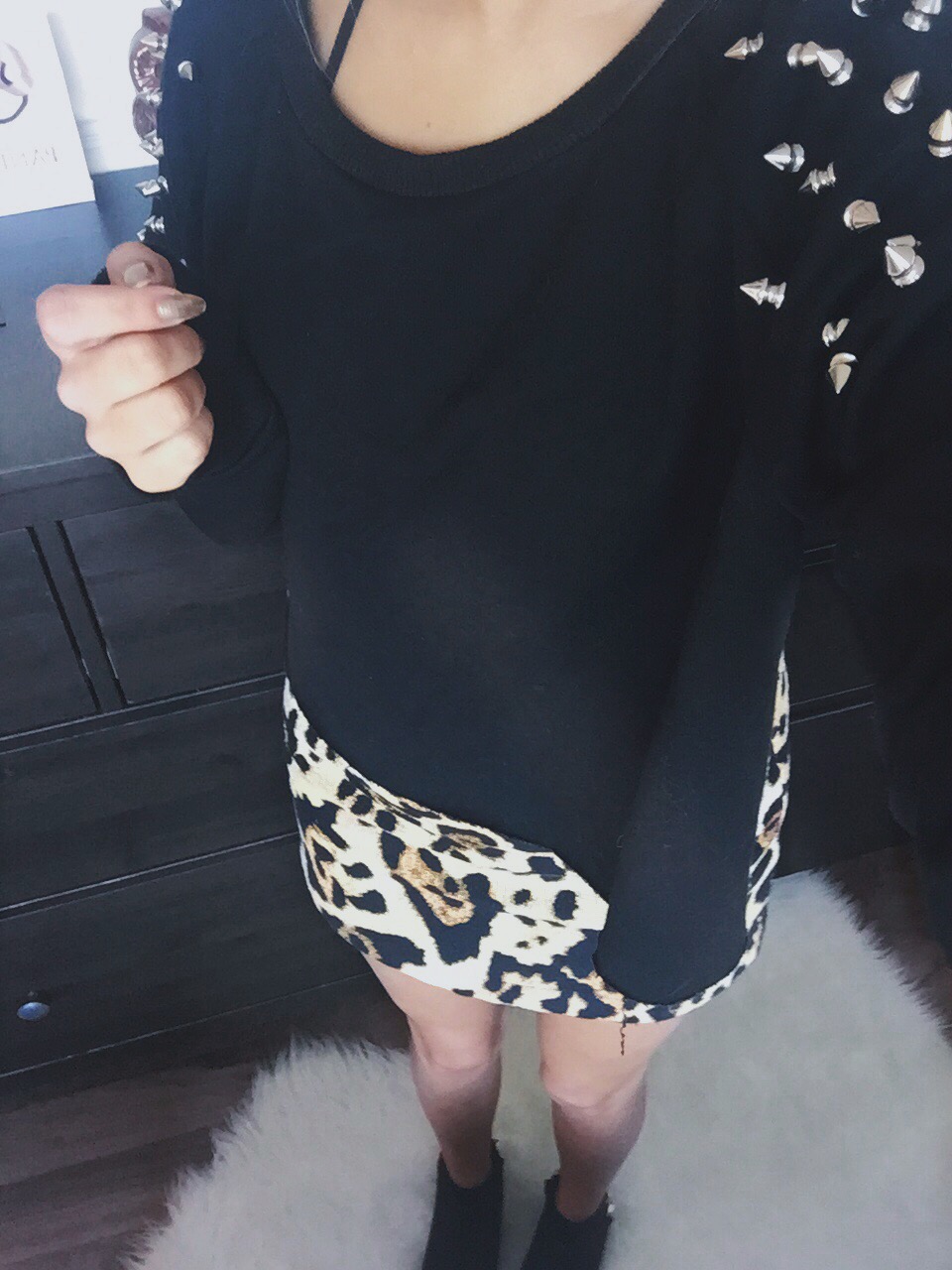 If you know me, you know I love a bit of leopard print. This skirt is one of my favourite things ever, it’s the skirt that kick-started my love of wearing skirts! I paired it with my black studded jumper and my black chain booties then wore my new earrings since my hair was up. I’ve been loving a darker lip lately which is so out of my comfort zone but so far I’m enjoying it, it really makes your makeup look nice and put together, even when you haven’t made much of an effort with it!