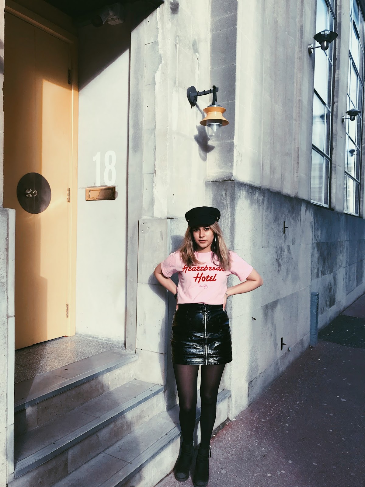 top – topshop // skirt – topshop // baker boy – asos [similar] // boots – river island