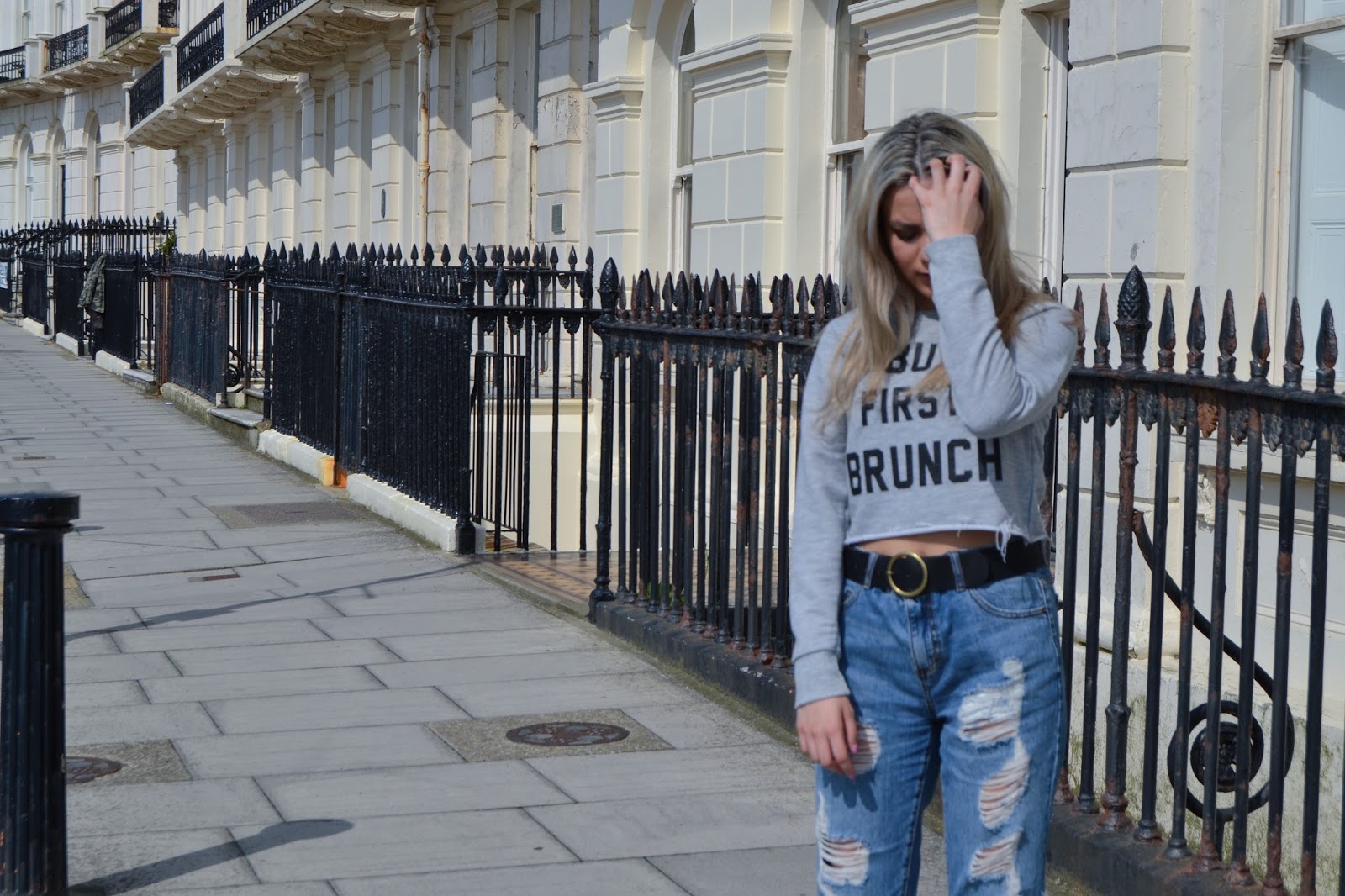 I think a little crop top with ripped boyfriend jeans, or any ripped jeans for that matter, look perfect together and give an effortlessly stylish vibe, and they suit the current weather in the UK so much!